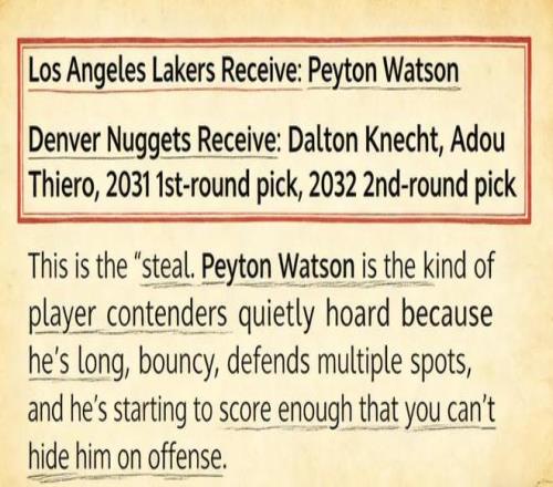 湖人送出:克内克特、蒂耶罗、2031年首轮签、2032年次轮签